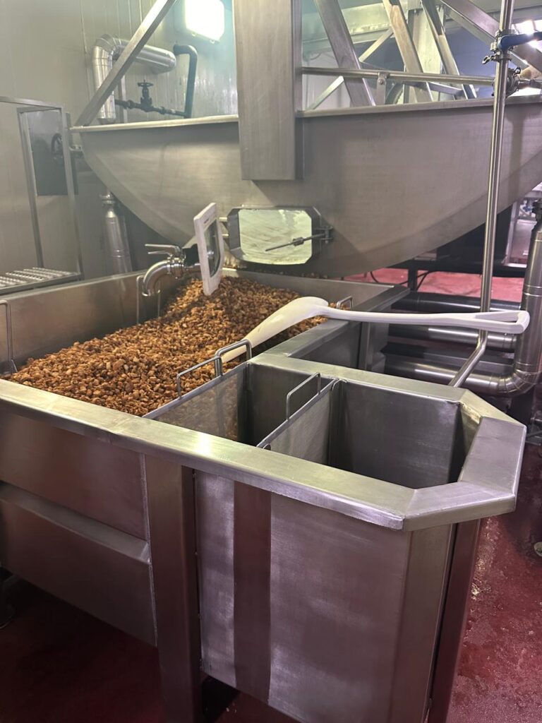 Cocedor de alta eficiencia para chicharrón y manteca adicionado con volteador de descarga, calentando por medio de aceite térmico.